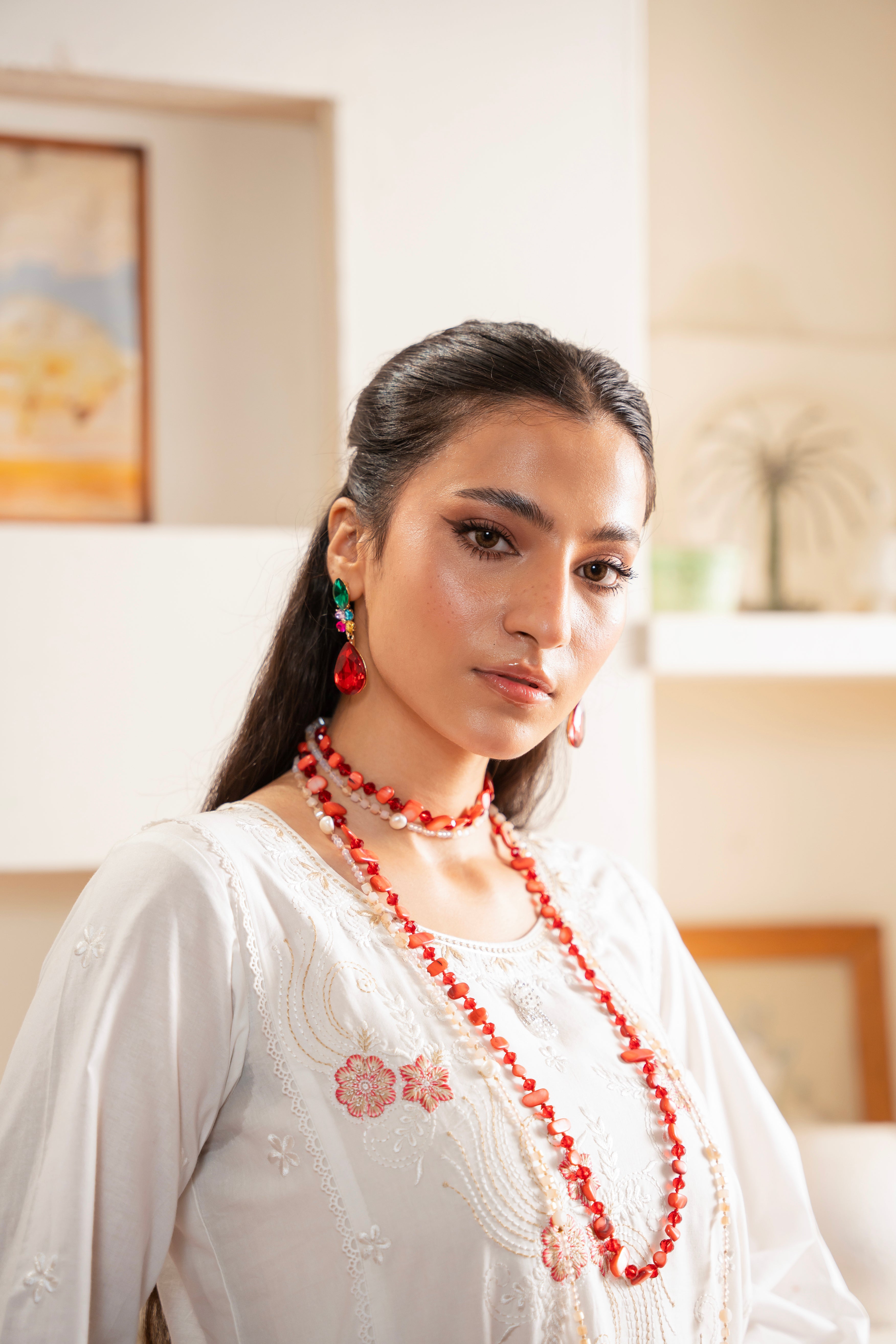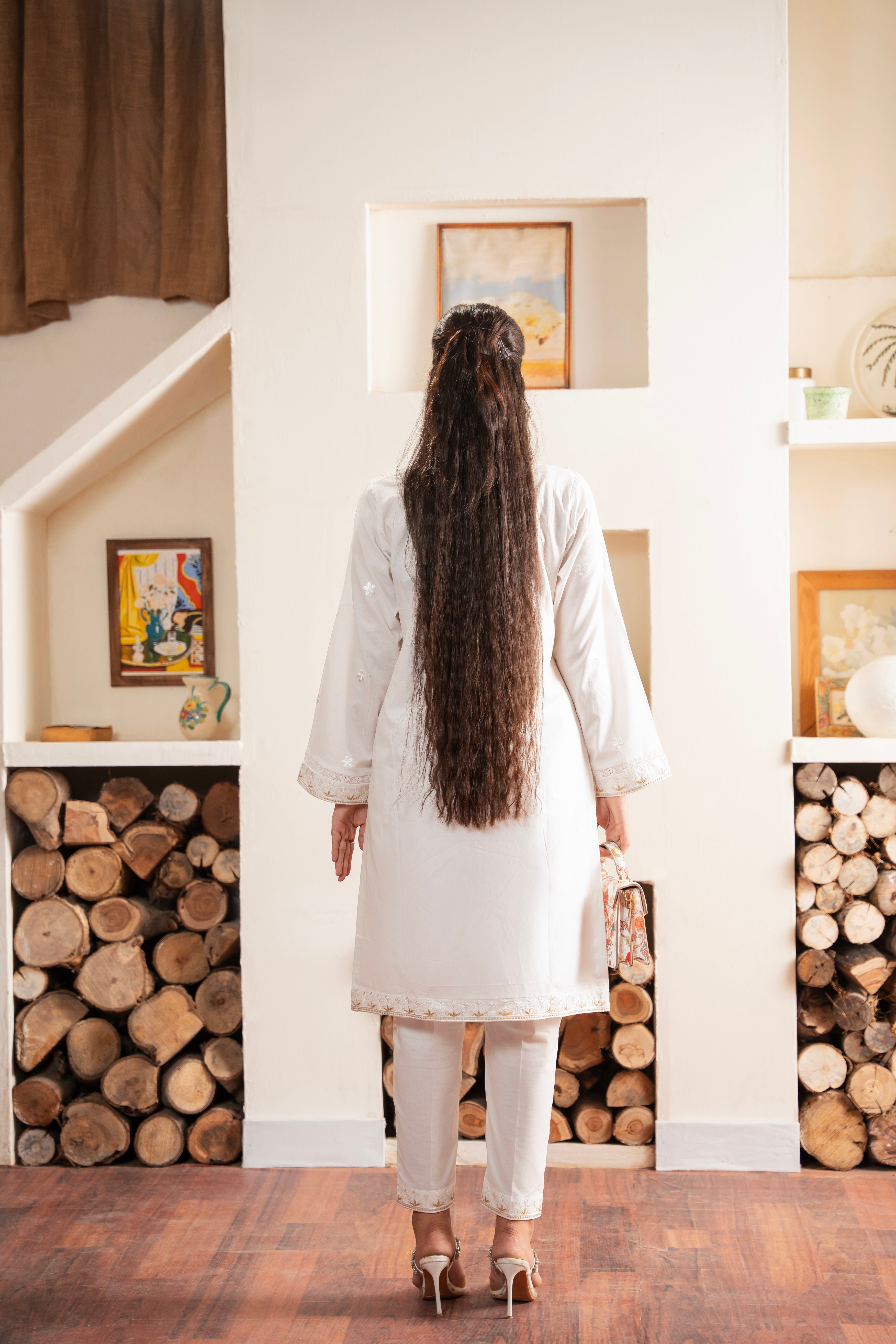 • It is adorned with embellishments along the front, with a beautifully detailed neckline and sleeve openings.