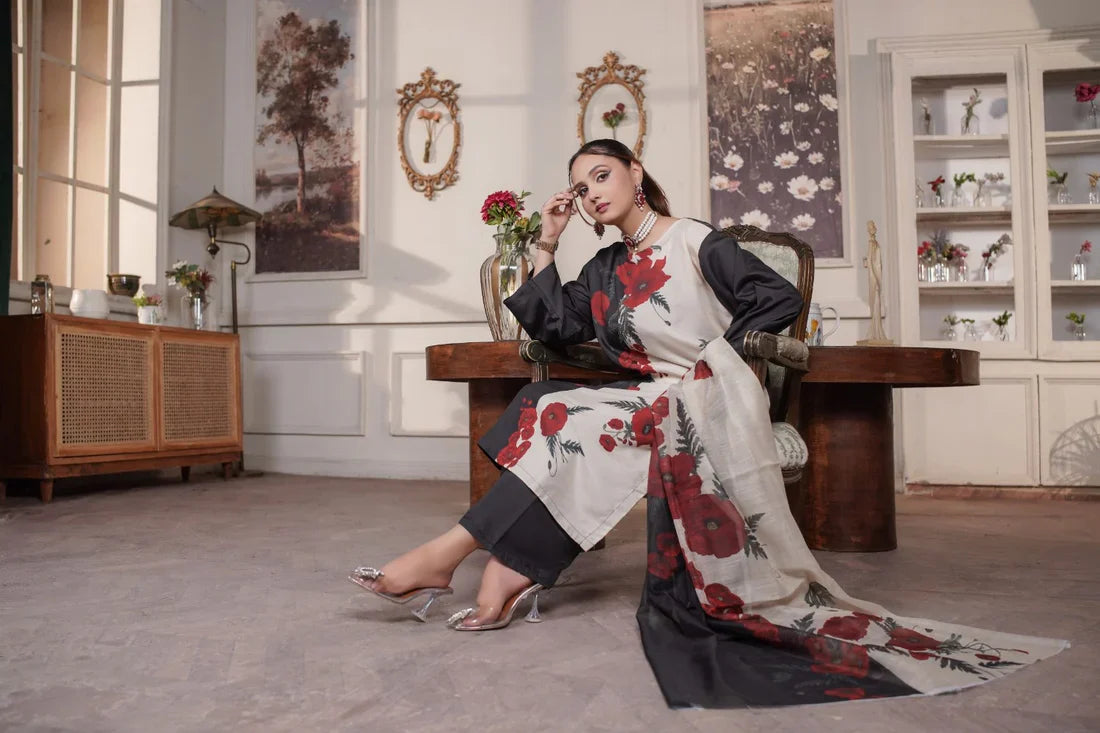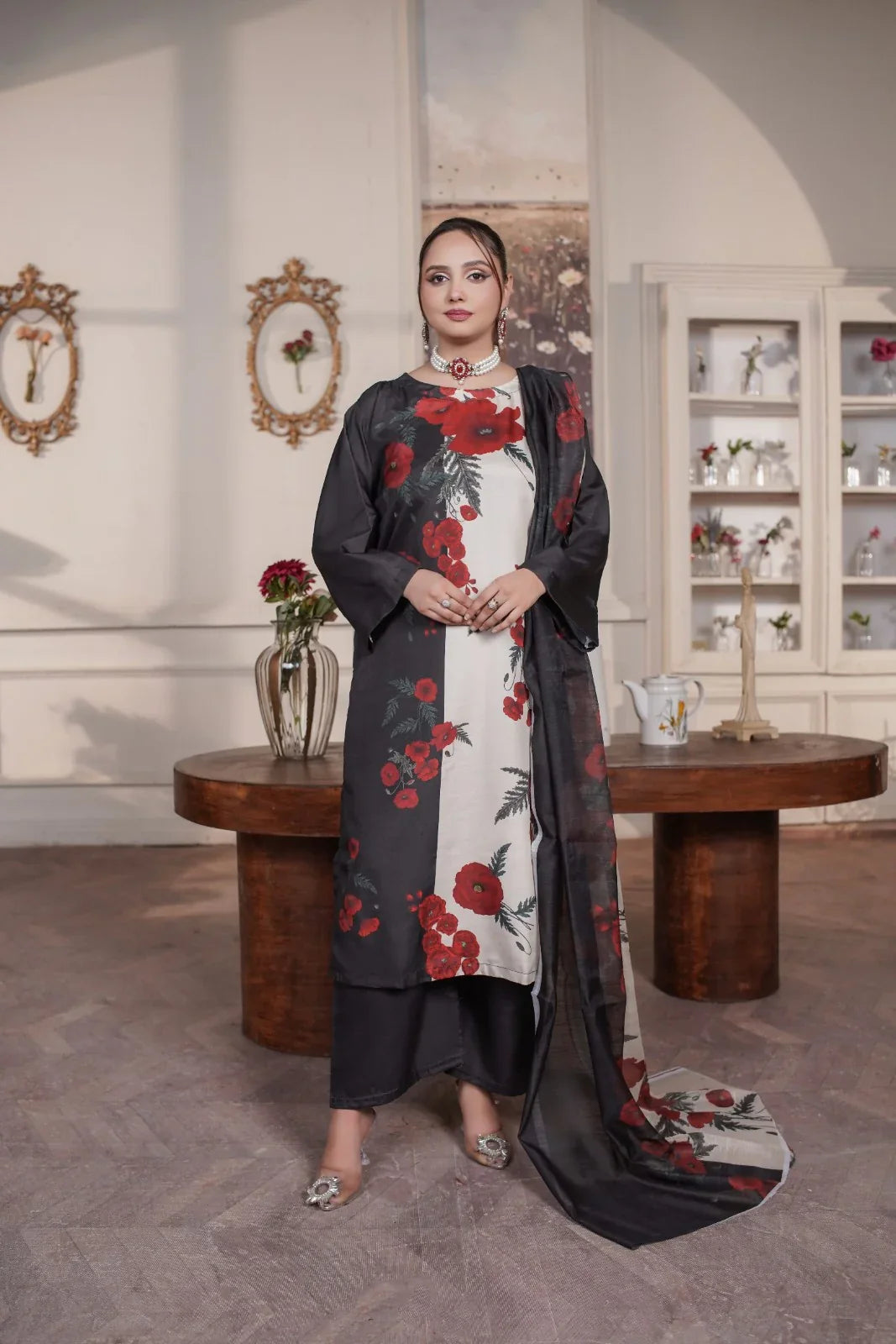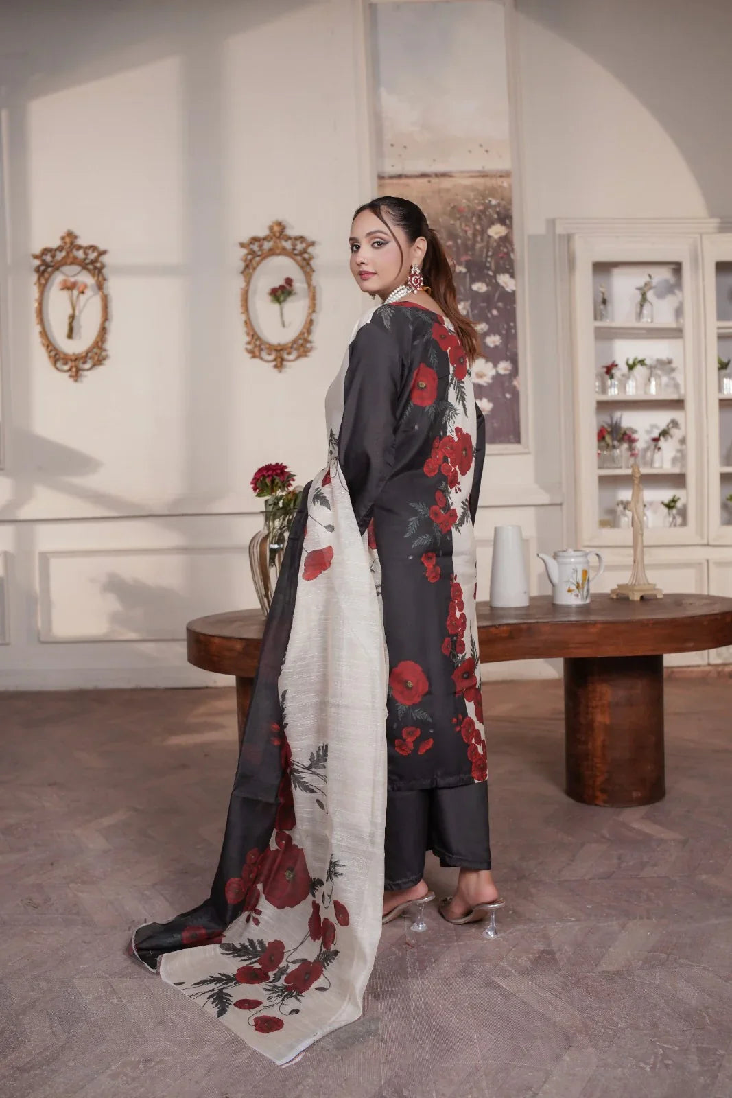 ✔ Design: A 3-piece set (kurta + Dupatta + straight-trousers/shalwar) with a modern, relaxed fit.