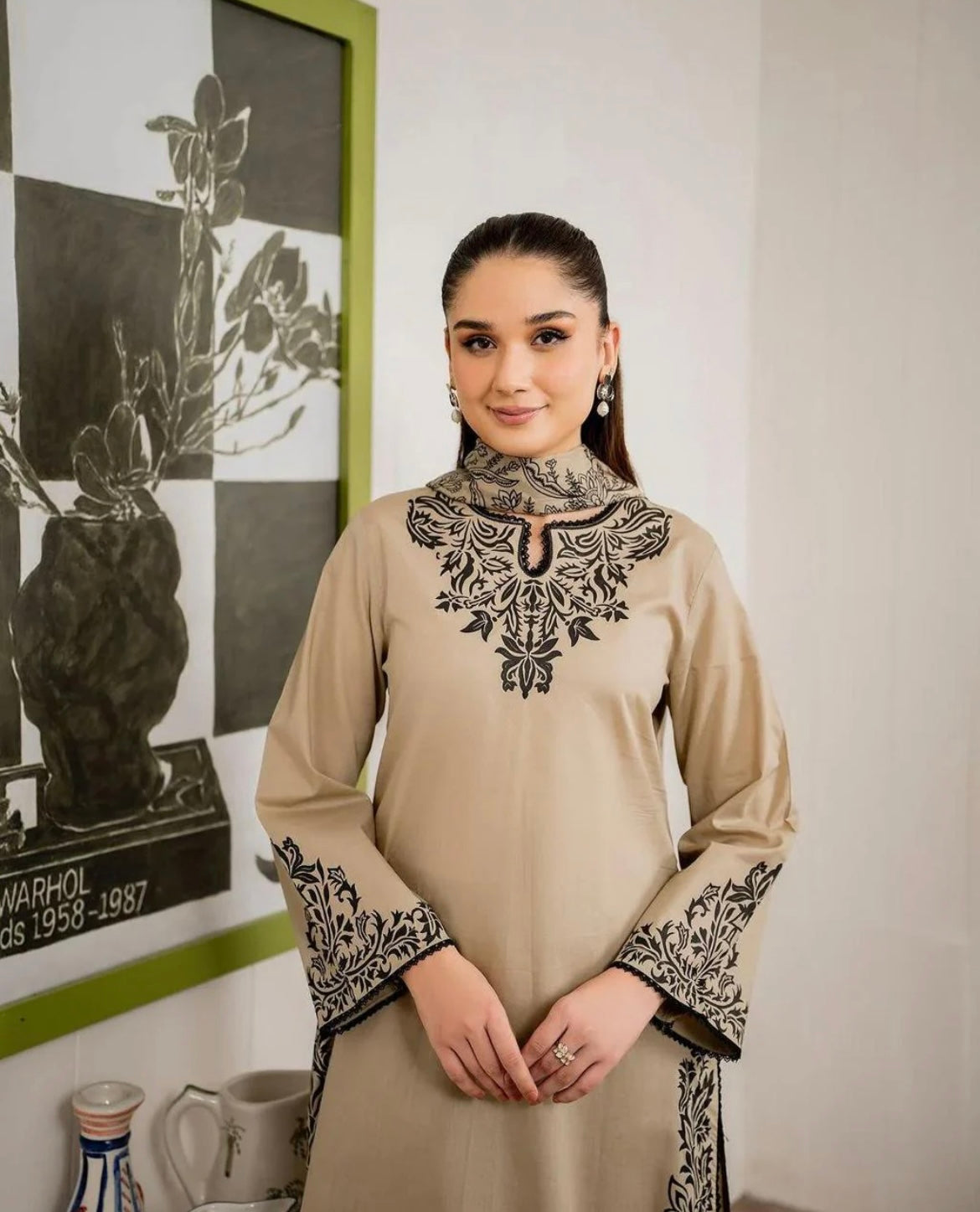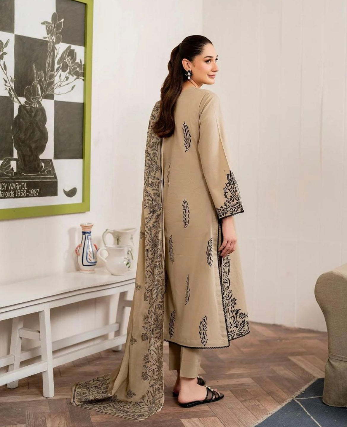 ✔ Design: A 3-piece set (kurta + Dupatta + straight-trousers/shalwar) with a modern, relaxed fit.