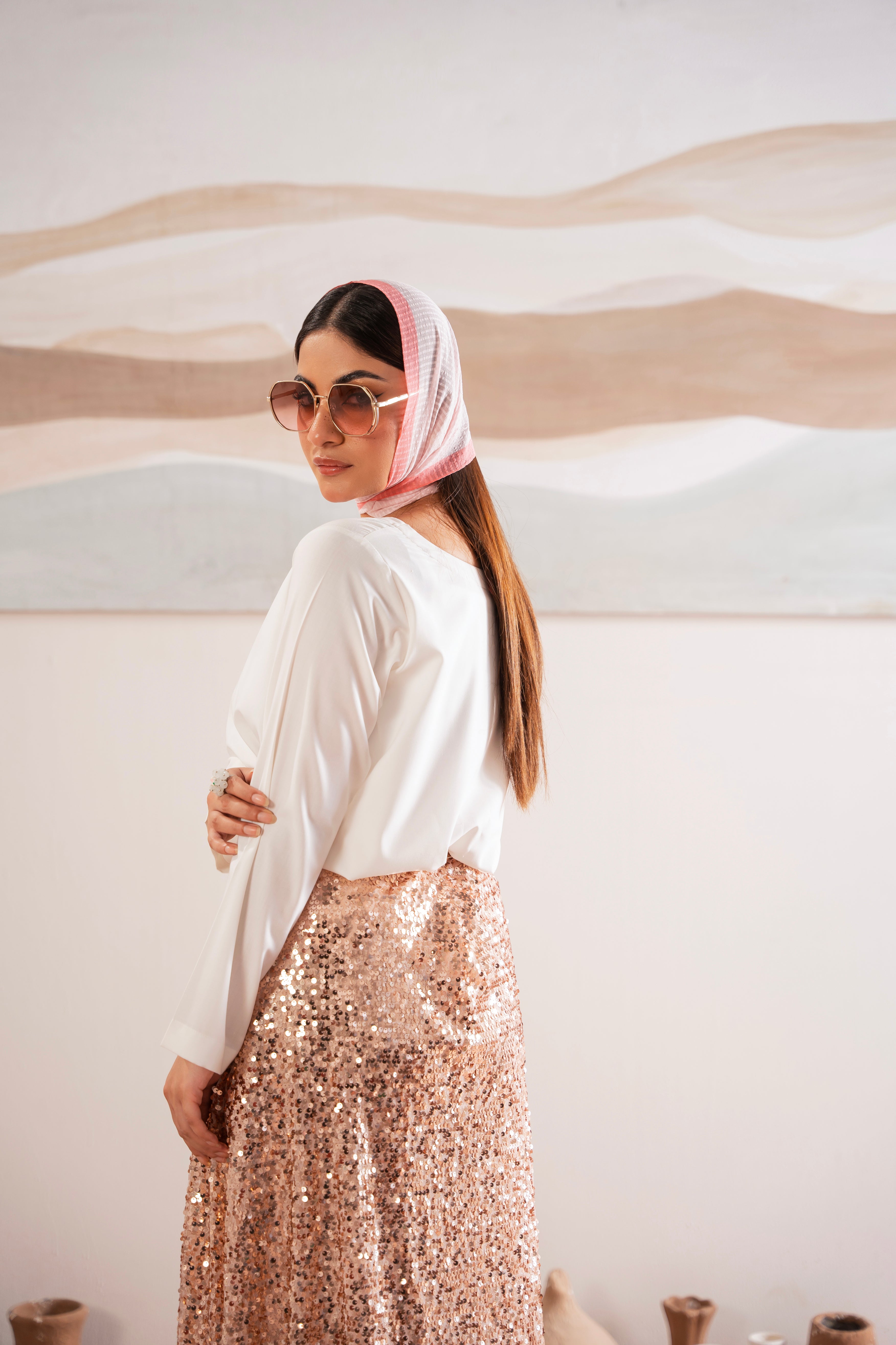This two-piece dress includes a stylish frock and tailored trouser. This dress is crafted from our new soft crepe fabric, known for its sweat-absorbing properties, ensuring comfort throughout the day. Designed to blend contemporary Western styles with subtle traditional touches. The dress is shown here in size small, perfectly fitted on the model. Length of Shirt, Sleeve Opening & Shirttail are as per Design. Actual color may vary slightly from what appears on your screen due to lighting.