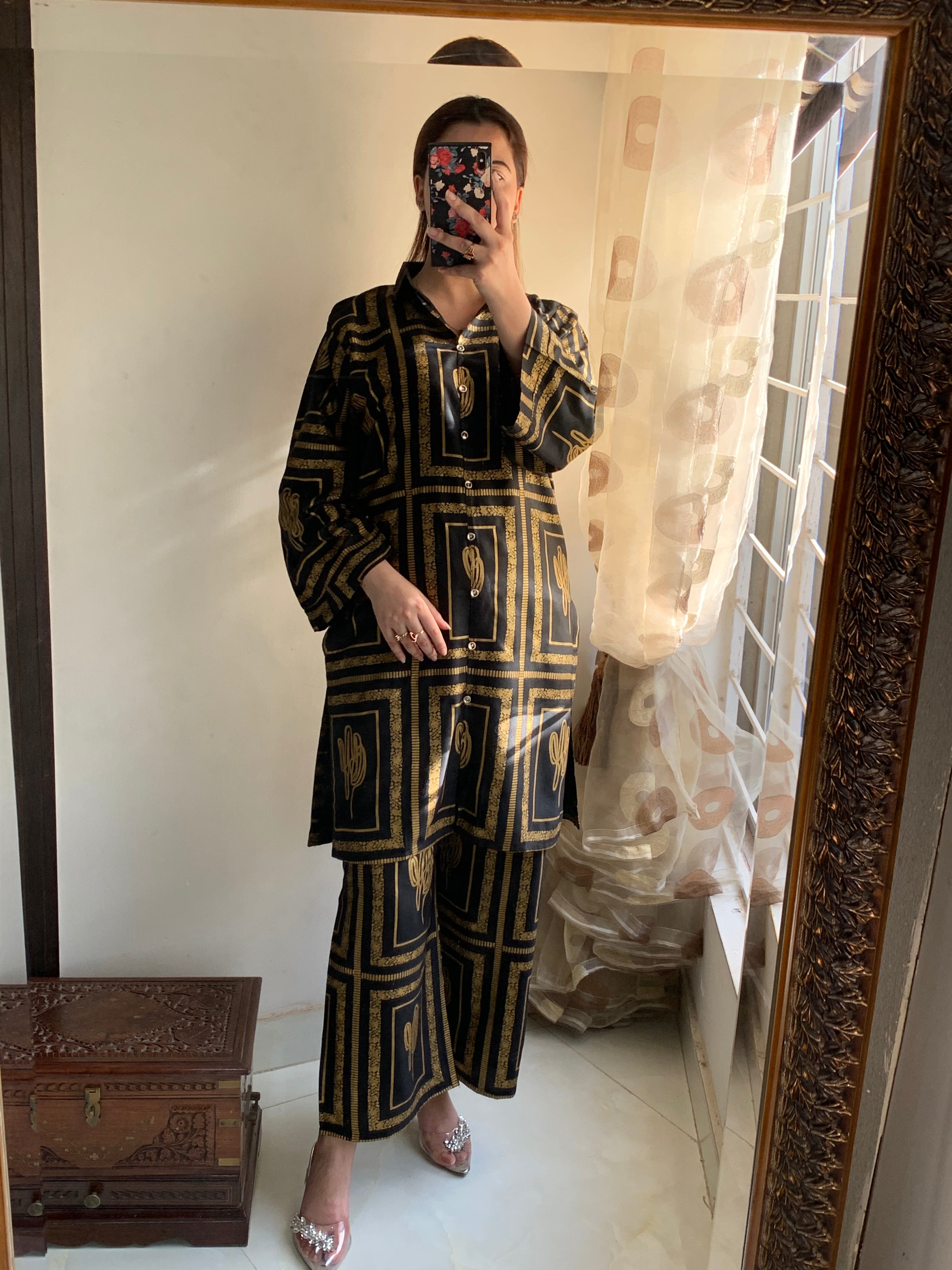 Block Print Premium Stone Linen Stitched 2 Piece Suit