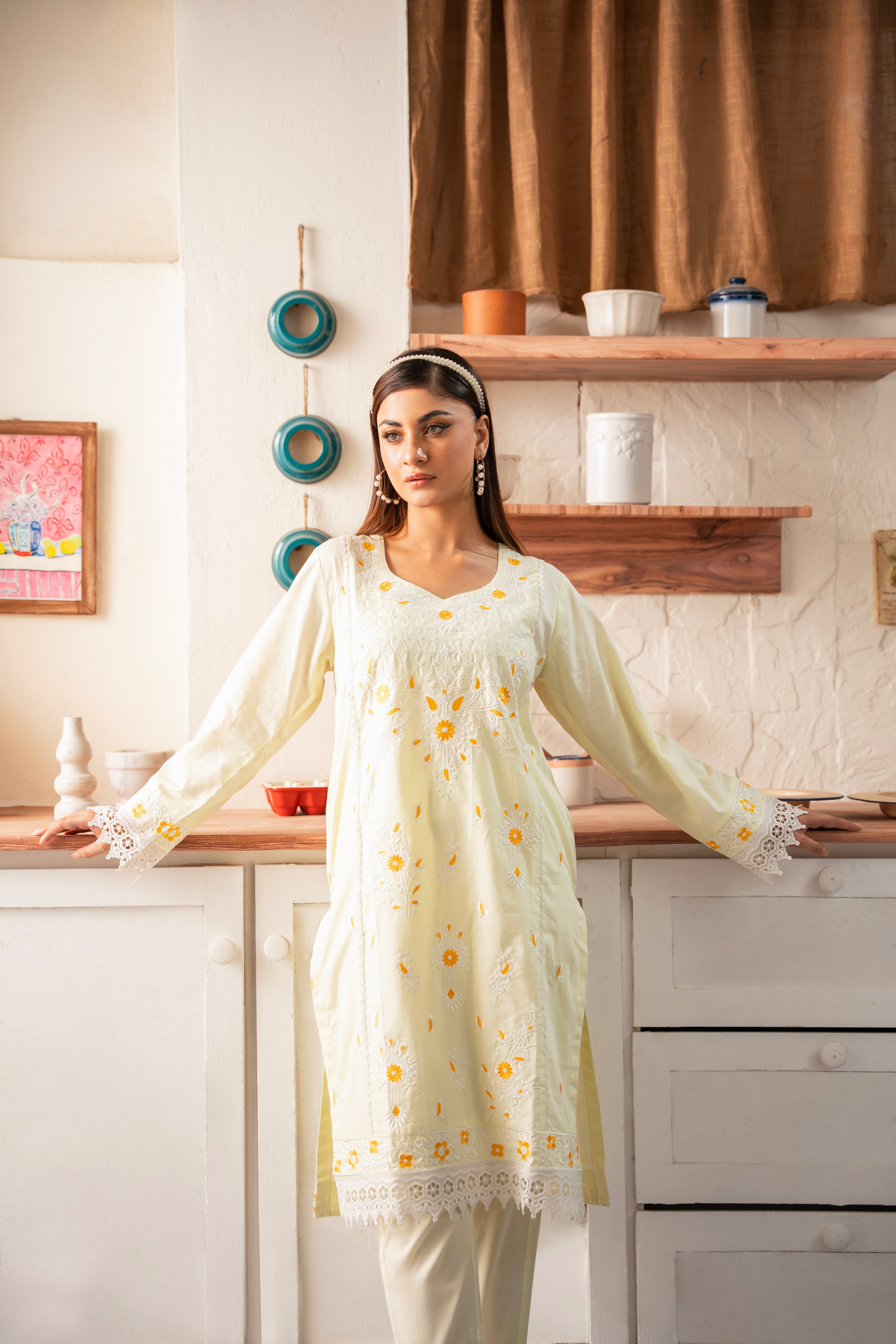 • This dress is made from soft cotton fabric, featuring intricate embroidery work.