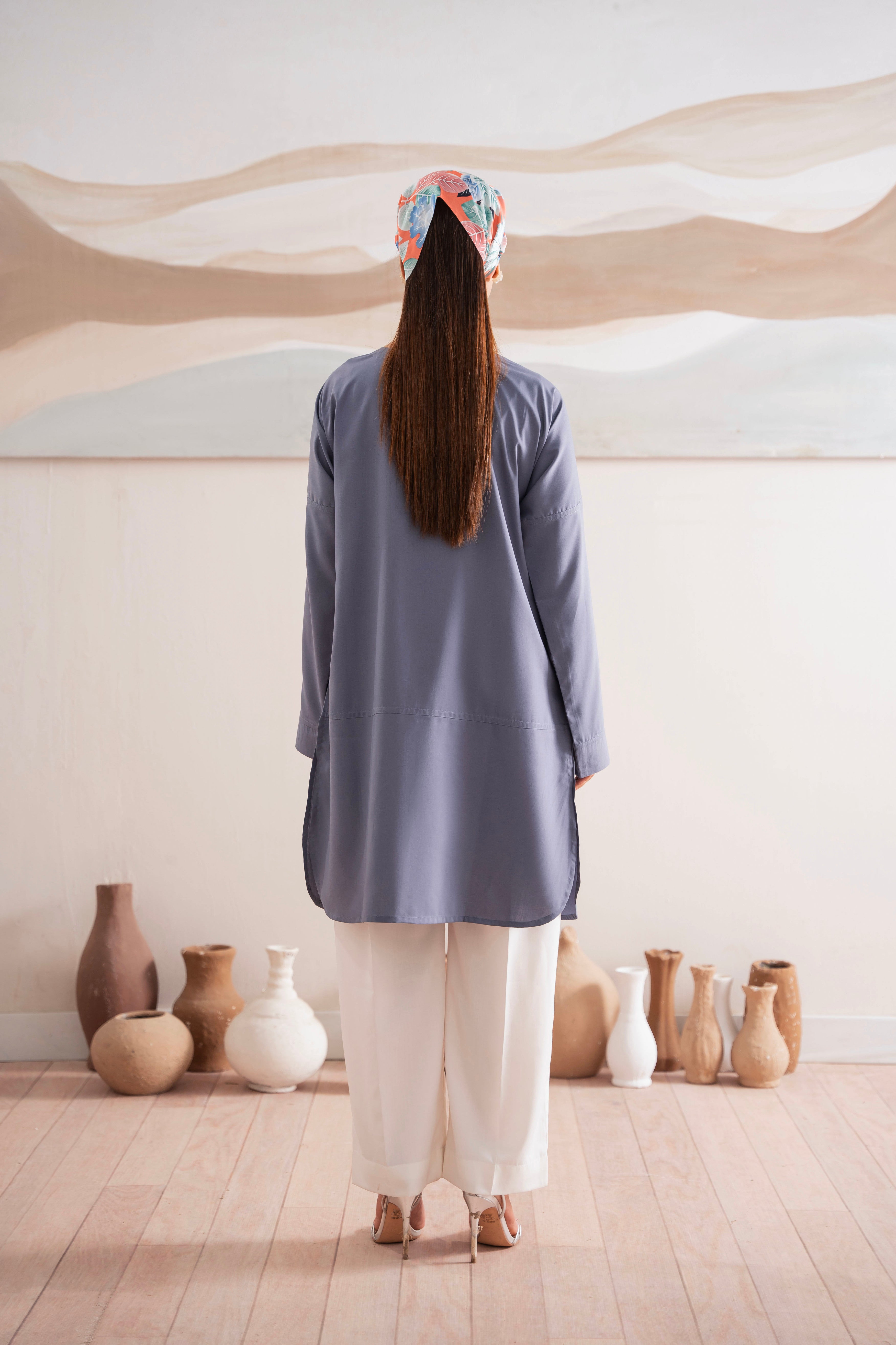 This two-piece dress includes a stylish shirt and tailored trouser. This dress is crafted from our new soft crepe fabric, known for its sweat-absorbing properties, ensuring comfort throughout the day. Designed to blend contemporary Western styles with subtle traditional touches. The dress is shown here in size small, perfectly fitted on the model. Length of Shirt, Sleeve Opening & Shirttail are as per Design. Actual color may vary slightly from what appears on your screen due to lighting.